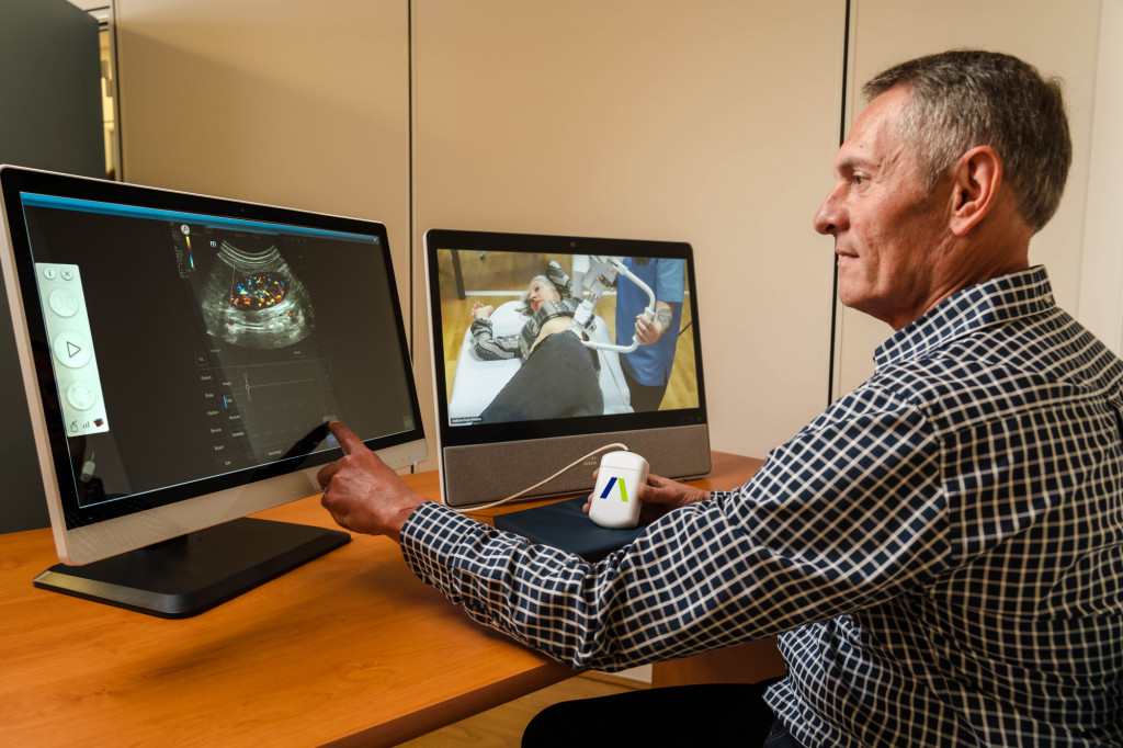 MELODY est une solution robotisée de télé‑échographie conçue et développée par AdEchoTech. Elle permet à un médecin expert, qui visualise les images échographiques en temps réel, de piloter à distance une sonde d’échographie. L’opérateur, situé à plusieurs centaines ou milliers de kilomètres, gère la pression et la position du bras robotisé installé auprès du patient.